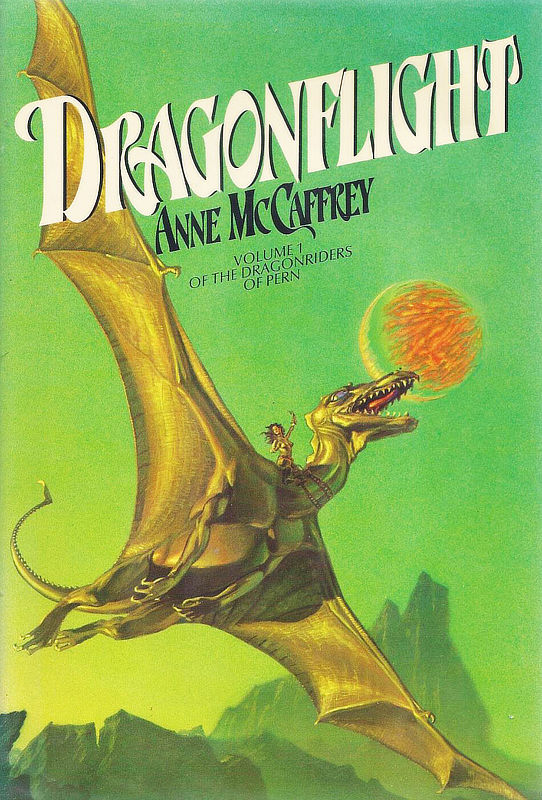 Cover of Dragonflight by Anne McCaffrey, in her Dragonriders of Pern series.